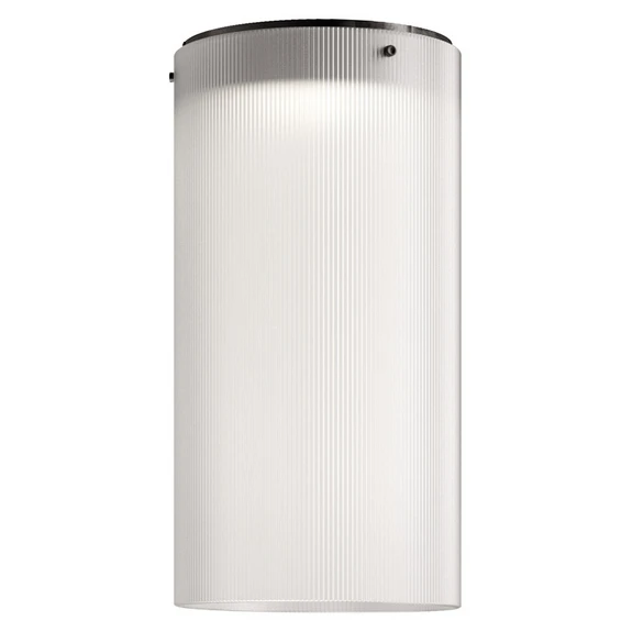 Den indbyggede LED udsender et varmhvidt skær, der strømmer blødt og blændfrit ud i rummet. Hovedattraktionen er imidlertid den cylindriske glasskærm med riller, der minder om kannelurerne på græske søjler. Dette mønster fremkalder smukke lyseffekter i loftet, når lampen tændes, samtidig med at skærmens høje kanter bidrager til et behageligt skær der lader lyset reflekteres jævnt ud i alle retninger.