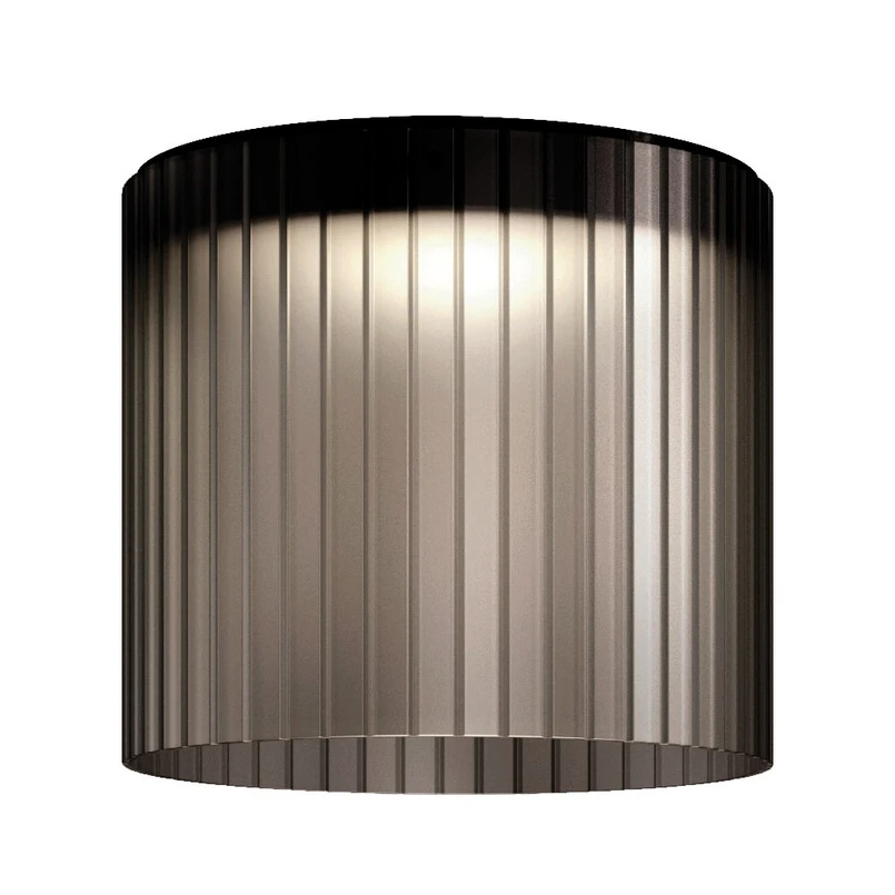 Den indbyggede LED udsender et varmhvidt skær, der strømmer blødt og blændfrit ud i rummet. Hovedattraktionen er imidlertid den cylindriske glasskærm med riller, der minder om kannelurerne på græske søjler. Dette mønster fremkalder smukke lyseffekter i loftet, når lampen tændes, samtidig med at skærmens høje kanter bidrager til et behageligt skær der lader lyset reflekteres jævnt ud i alle retninger.