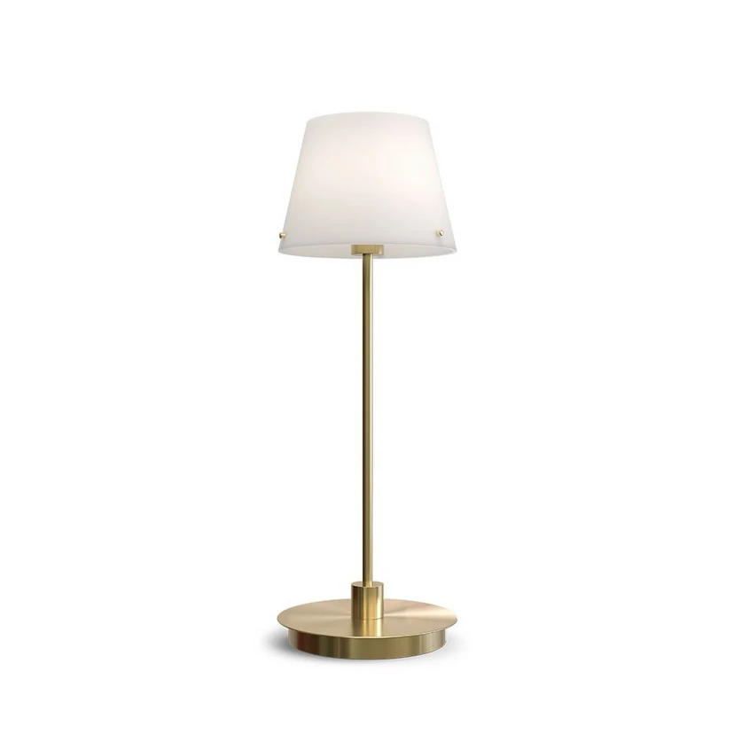 Gil il Grande Bordlampe Satin/Brass er en enkel og tidløst designet lampe til brug i hjemmets mange rum. Bordlampen har en klassisk form, men i denne nyfortolkning er den traditionelle tekstilskærm byttet ud med en i mat opalglas, der afgiver et særligt glansfuldt skær, når lyset tændes. Lyset skinner både ud gennem skærmen og gennem en åbning i bunden, så man fint kan benytte denne lyskilde til læsning eller lignende sysler og gøremål.