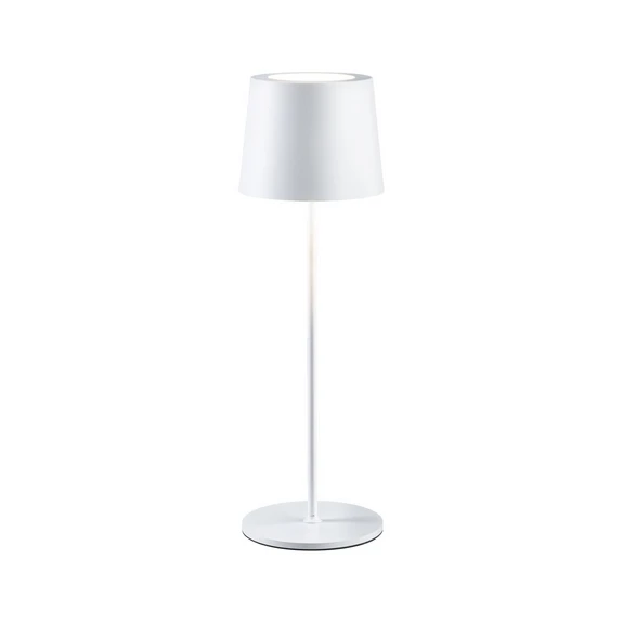 Gilo Portable Bordlampe IP44 Matt White fra PAULMANN er den ideelle løsning for dig, der søger en alsidig og stilfuld belysning. Denne bordlampe, fremstillet af metal og plast i en elegant hvid farve, er designet til at passe ind i ethvert hjemmemiljø. Med dens kompakte dimensioner på 105 x 350 mm er den let at placere, hvor du har brug for den, uden at kræve en strømtilslutning. Takket være dens IP44-beskyttelsesklasse er den velegnet til både indendørs og udendørs brug, hvilket gør den perfekt til alt fra campingture til hyggelige aftener på terrassen. Lampen skaber en varm hvid lysatmosfære med en farvetemperatur på 2700 K, og dens trinløse touch-dæmpningsfunktion giver dig fuld kontrol over lysstyrken. Med en hurtig opladningstid på 5-6 timer kan du nyde op til 10 timers lys ved fuld styrke. Opladning sker nemt via USB-C, hvilket gør den yderst praktisk. Oplev den tidløse elegance og funktionalitet, som Gilo-serien tilbyder. .