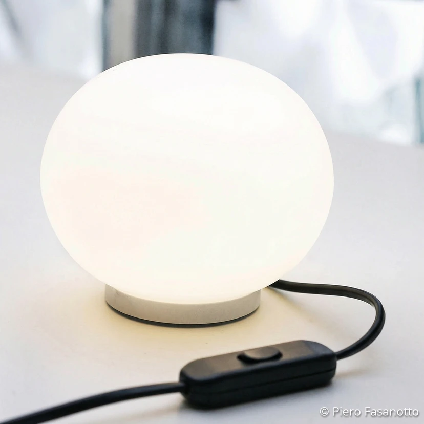 Glo-Ball Basic Zero Bordlampe er en opal mandarinformet glaslampe med flange til placering direkte på bord, gulv eller reol. Glo-Ball Basic Zero bordlampen har en organisk form, som gør, at den er velegnet til åbne miljøer. Du kan vælge lampen med afbryder eller dæmper.