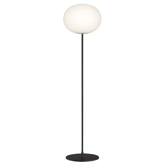 Glo-Ball F3 Gulvlampe Black Opal er en del af Glo-ball serien fra Flos, hvor det simple design er bygget op omkring den simple glasskærm i mundblæst glas. Det matte opalglas giver et blødere lys end klar glas og er derfor helt ideel til at skabe en hyggelig belysning i hjemmet. Lampens klassiske udtryk og minimalistiske form, passer let ind i den moderne indretning, såvel som den klassiske.