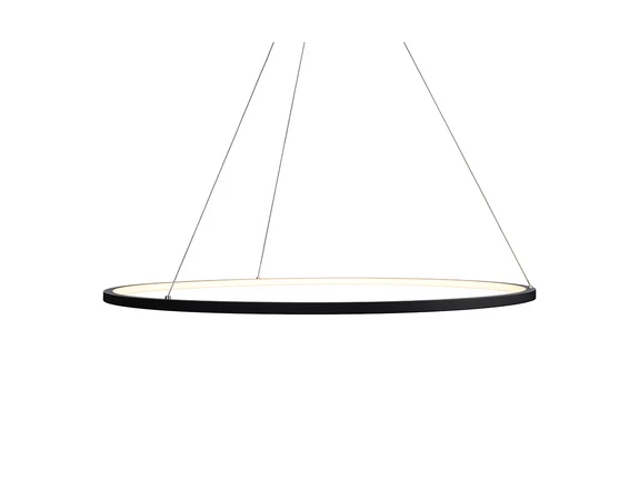 Gloria LED Pendel Ø80 Slim Black fra Antidark er en imponerende pendellampe, der kombinerer minimalistisk design med moderne elegance. Denne pendel er fremstillet i sort aluminium og har en integreret LED, der sikrer en jævn og behagelig belysning. Med en diameter på 80 cm og en ringhøjde på 1,5 cm, er denne lampe ideel til at skabe en stemningsfuld atmosfære i dit hjem. Lyset er placeret indvendigt i ringen, hvilket giver et blødt og indirekte lys, der kan justeres i lysstyrke for at passe til forskellige behov og stemninger. Gloria pendlen er perfekt til at hænge over spisebordet, i stuen eller som et dekorativt element i ethvert rum, hvor du ønsker at tilføje et strejf af luksus. Serien tilbyder også andre størrelser, så du kan kombinere dem for et unikt og iøjnefaldende udtryk. Oplev, hvordan denne pendel kan transformere dit rum med sin enkle, men betagende æstetik.