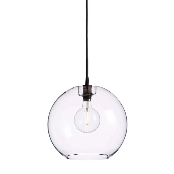 Gloria Pendel Ø380 Sort/Klar Glas er en virkelig smuk lampe i et klassisk design med moderne træk – Designet af Belid.