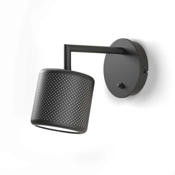Grain Matt Black er en skøn og moderne lampe i et specielt design. Det monokrome, mat-sorte farveskema, den enkle form og det bastante metalmateriale, der udgør både stel, fod og skærm, har et særligt nutidigt udtryk og passer glimrende ind i moderne indretninger og rumkoncepter. Skærmen er kendetegnet ved en cylindrisk form med let afrundede kanter og en iøjefaldende perforeret overflade, der lader lyset bagved skinne ud til alle sider i et smukt punktmønster. Samtidig er skærmen åben i bunden, så lyset også kan strømme direkte nedad i et effektivt, direkte downlight.