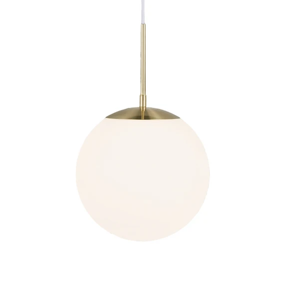Når man tænder for lampen, lyser skærmen op som en blødt skinnende sfære. Skærmens kuglerunde form bevirker, at lyset stråler fuldkommen ensartet til alle sider i et flot allround-skær. Lampen er bestykket med en standardfatning, der kan udstyres med en pære efter eget valg.