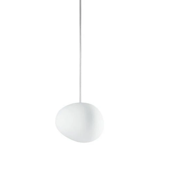 Gregg Pendel S White lyser med sin lækre, organiske silhuet inspireret af den naturlig formning, som rindende vand giver småsten, op i rummet selv uden lyset tændt. Når mørket endelig falder på, og lyset tændes, breder den milde og indbydende glød sig i lækre varme bølger gennem det smukke mundblæste glas.