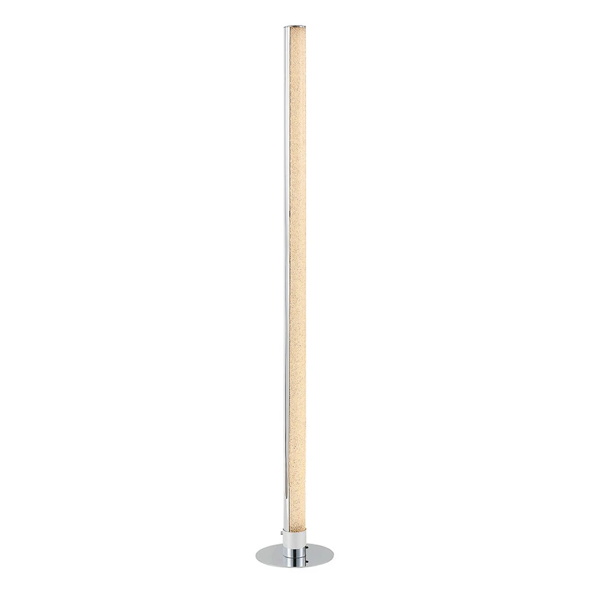Hadis Gulvlampe White/Chrome er en puristisk lampe med en strømlinet form, der hurtigt finder vej ind i den moderne stue eller i soveværelset. Lampen hviler på en forkromet fod og har form som en slank stav. Ydersiden har en karakteristisk krystalleret overflade, der skaber smukke lyseffekter, når lampen tændes. Lyskilden er en indbygget LED, der skinner i et varmhvidt skær. Lampen betjenes med en handy trykfod, der sidder på kablet. Imidlertid kan farven ændres via den medfølgende fjernbetjening, så lyset i stedet skinner i et væld af RGB-nuancer og derved bringe fest og farve ind i lokalet.
