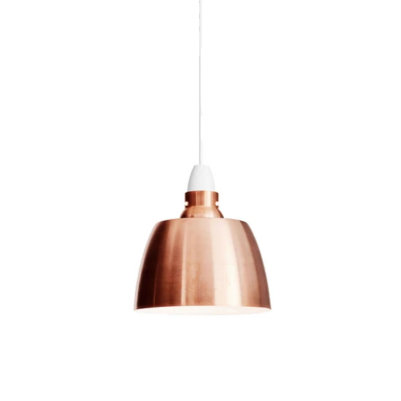 Hang On Honey Pendel Raw Copper er en del af den smukke pendelserie Hang On Honey designet af Niels Bak Rasmussen i 2005. Lampen er allerede blevet en klassiker og hyldet for sit smarte koncept, der giver dig frit spil til at lege med indretningen af din stue. Da skærmen ikke er fæstnet til resten af lampen men kan tages af, har man mulighed for at bytte den ud med andre skærme. Af samme grund kommer Hang On Honey-pendlen i tre smukke farver, hver med deres individuelle udtryk og charme. Da skærmen er fremstillet af metal, dirigeres lyset ud gennem den brede åbning i bunden i én samlet kegle, der skaber et effektivt og direkte downlight.