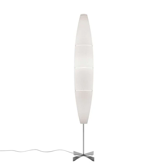 Havana Gulvlampe med stander og fod i indlakeret eller forkromet metal og skærm der består af fire satin-finish polyethylen elementer. En del af designsamlingen på Museum of Modern Art (MOMA) i New York.