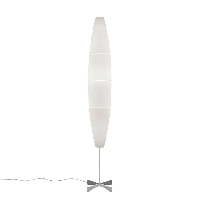 Havana Gulvlampe med stander og fod i indlakeret eller forkromet metal og skærm der består af fire satin-finish polyethylen elementer. En del af designsamlingen på Museum of Modern Art (MOMA) i New York.