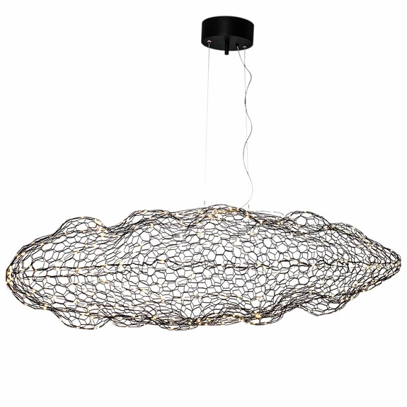 Hayden LED Pendel 115 Matt Black giver indretningen et strejf af luksus. Det fleksible trådnet, er anvendt som et skulpturelt materiale til en utraditionel pendel. Kombineret med de mange LED-dioder der er fordelt over hele lampen, fremstår lampen både elegant og moderne. Lampen giver et vidunderligt åbent lys, der tilfører rummet atmosfære og stemning.