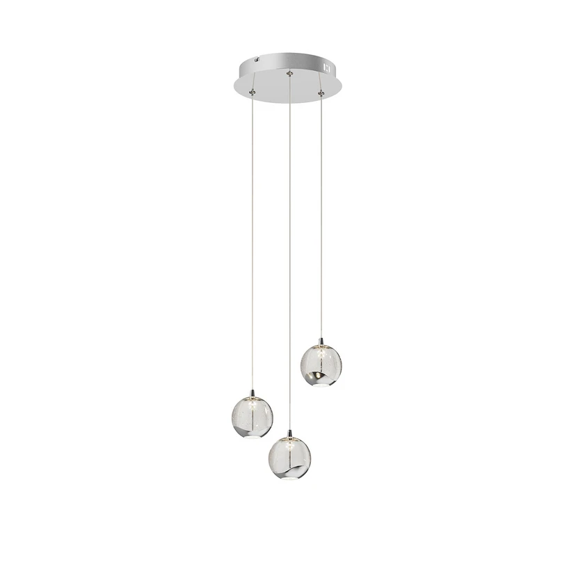 Hayley 3 Pendel Clear/Chrome vil med sine smukke og elegante buede silhuet tage sig godt ud i næsten ethvert lokale. Især som det samlende element i stuen, ophængt parvis over spisebordet eller måske endda i entréen vil den komme til sin ret. Det lækre varme lys bølger ud fra lyskilderne og forkæler øjnet, mens lokalet får en stilet og fængende æstetik.