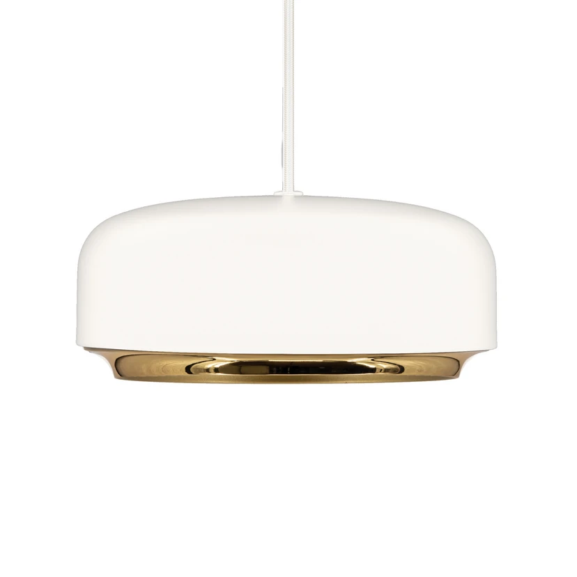 Det indbyggede LED er skjult bag en hvid diffuser, der sikrer en behagelig og jævn belysning. Perfekt over spisebordet, hvor det varme nedadrettede lys, oplyser hjemmets samlingspunkt. Fås i to størrelser, så der er rig mulighed for at anvende den over spisebordet, køkkenbordet eller i et af hjemmets mindre kroge.