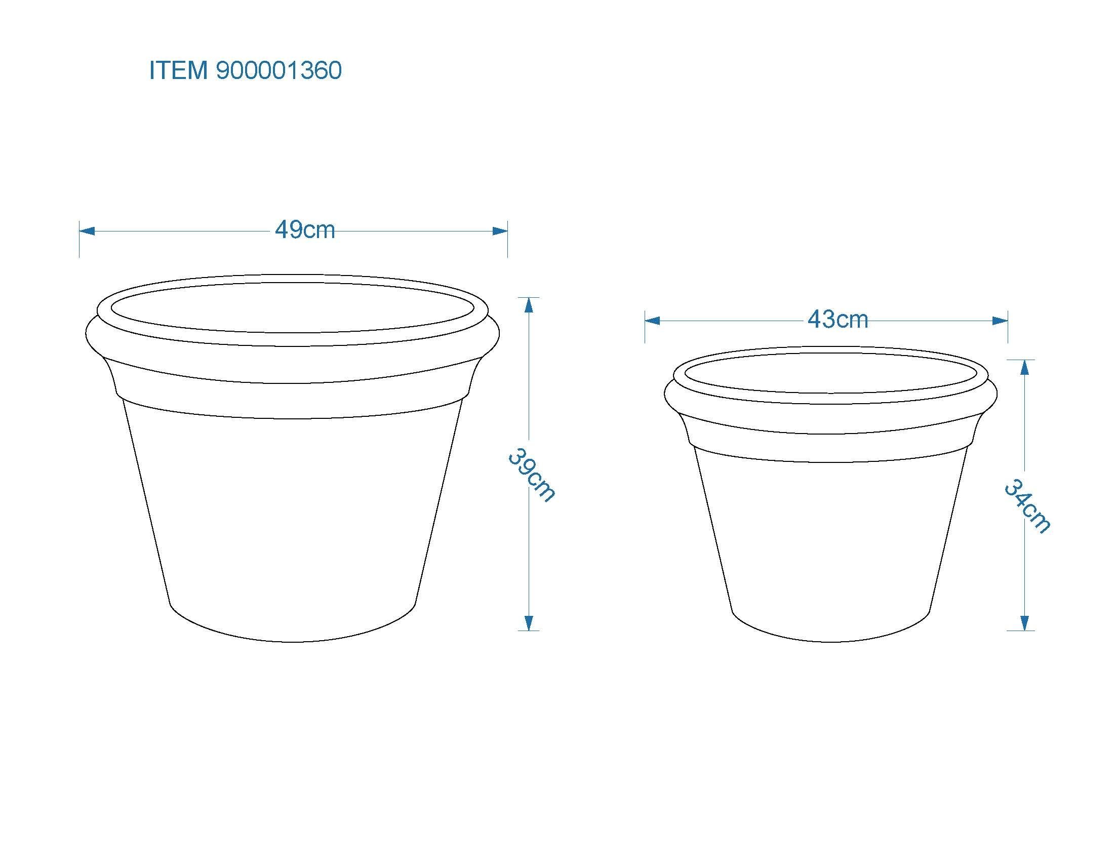 - Lille blomsterpotte: Højde 34 cm, Ø 43 cm; Stor blomsterpotte: Højde 43 cm, Ø 54 cm