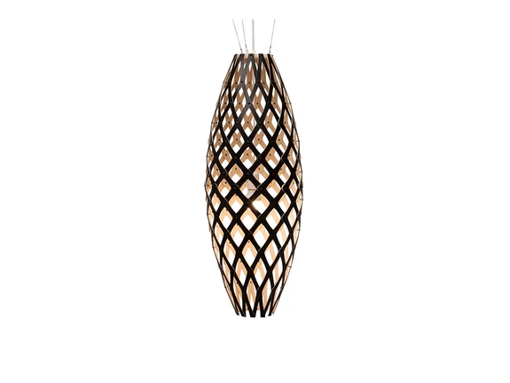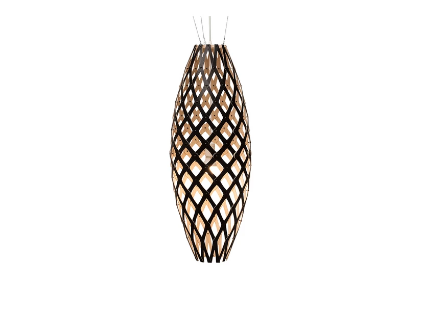 Hinaki Pendel H140 Sort 1 Side er en unik og stilfuld belysningsløsning fra det anerkendte mærke David Trubridge. Denne pendel, også kendt som en loftlampe, er fremstillet af bæredygtigt bambusmateriale og har en elegant sort farve, der tilføjer et moderne touch til ethvert rum. Med en højde på 140 cm og en diameter på 50 cm er denne pendel ideel til at skabe en iøjnefaldende belysning i både stuer og spisestuer. Designet er inspireret af de traditionelle Hīnaki fiskefælder, som Maori-folket har brugt, og det afspejler en smuk kombination af kultur og moderne æstetik. Den ene side af pendlen er malet, hvilket giver en spændende visuel effekt og mulighed for at tilpasse udseendet efter din indretning. Uanset om du ønsker at tilføje et kunstnerisk element til dit hjem eller blot forbedre belysningen, er Hinaki Pendel et fremragende valg.