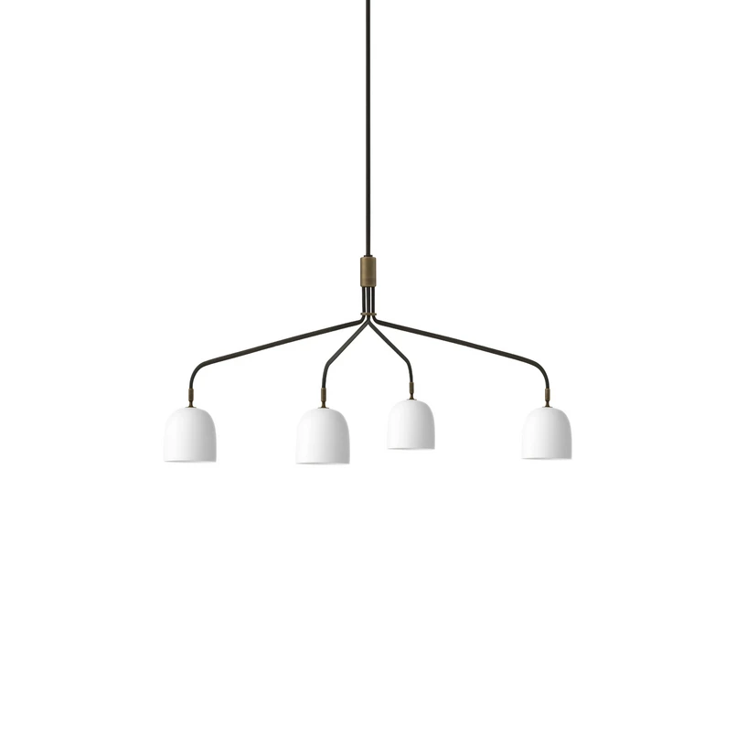 Howard 4 Lysekrone Long Bone China er en elegant kreation af den danske designerduo Space Copenhagen for GUBI. Lysekronens enkle design gør den til en yderst alsidig lampe, der passer både til den private og den offentlige sfære.