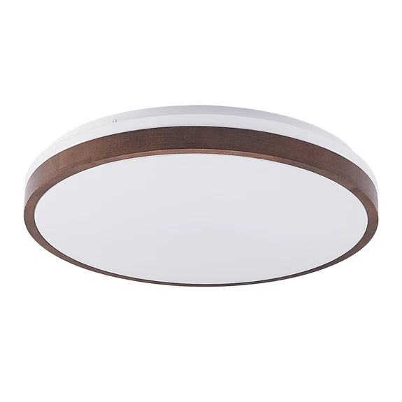 Hudsona Loftlampe Brown kommer i et pænt naturdesign med en klassisk cirkulær udformning, der er nem at indpasse i hjemmets mange rum. Lampen har et bredt, hvidt panel, som lyset kan skinne ud igennem i et spredt skær, der fungerer godt som grundbelysning. Panelet er omkranset af et mørkebrunt bånd med en naturtro træ-finish, der giver lampen et ekstra designorienteret pift.