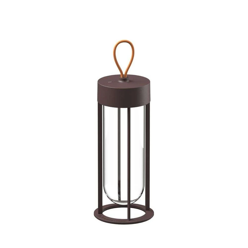 In Vitro Unplugged 2700K Deep Brown fra italienske Flos er, med sit minimalistiske look og sit slanke skelet i aluminium, både elegant og praktisk at tage med i hånden, når turen går til stranden eller i skoven i de danske sommeraftener. Lampen er designet af franske Philippe Starck, der i tre årtier har brillieret med både kreative og frem for alt praktiske kvalitetsdesigns. In Vitro leder tankerne hen på en simplere tid, hvor by og land var i perfekt balance og den bærbare petroleumslampe var fast inventar fra by-gaden til bondegården.