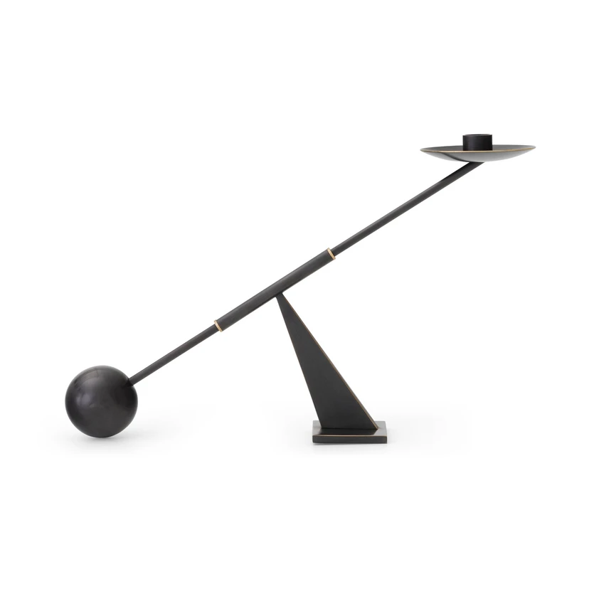 Interconnect Candle Holder W42,5 Bronzed Messing er en imponerende lysestage fra Audo Copenhagen, der vil tilføje et strejf af elegance til dit hjem. Denne unikke lysestage, designet af Colin King, fungerer som et iøjnefaldende midtpunkt med sine overdrevne proportioner. Den er fremstillet af stål og har en smuk bronzeret messingfinish, der giver et varmt og hyggeligt lys. Dens geometriske form, bestående af en kugle, en vinkel og en linje, skaber en enkel, men alligevel sofistikeret æstetik, der gør den til mere end blot en lysestage – den fungerer også som en skulptur. Uanset om du placerer den på spisebordet, i stuen eller i entréen, vil den tilføje en kunstnerisk dimension til din indretning. Interconnect Candle Holder fås også i poleret messing og malet stål, så du kan vælge den variant, der passer bedst til din stil.