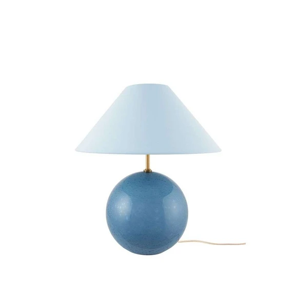 Iris 35 Bordlampe Dove Blue præsenterer sig i et glad og muntert design, der lysner op i rummet i mere end én forstand. Særligt kendetegnende for denne model er dens klodeformede fod, der smukt spiller sammen med den klassiske skærm, så resultatet bliver et gennemtænkt og veludført geometrisk design med en formorienteret silhuet. Denne type design er perfekt til moderne og minimalistiske indretninger, hvor den friske farveschattering samtidig fungerer som en fin kontrast til de mere neutrale toner.