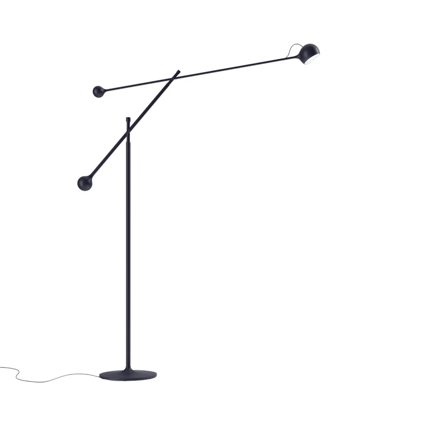 IXA Gulvlampe Anthracite er en skøn ny lampeserie fra italienske Artemide, der straks fanger blikket med deres afbalancerede design og smukke, geometriske sammenspil. Lampeserien er inspireret af den amerikanske billedhugger Alexander Calders dynamiske skulpturer og udgør en smuk fortolkning af ideen om elegant balance gennem præcision og raffineret kunsthåndværk. IXA-kollektionen består af bord-, gulv- og væglamper, som er sammensat af en kunstfuld kombination af et sfærisk lampehoved, slanke stænger og modvægte, hvor både tyngden og selve formerne afbalancerer hinanden perfekt.