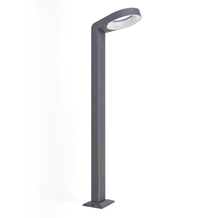 Jarka LED Havelampe Anthracite er en moderne belysningsmodel med et holdbart armatur, der skaber gode lysforhold på udendørsområder. Lampens form er meget enkel og har en antracit-farvet belægning, der gør den nem at indpasse i omgivelserne. Lampehovedet sidder skråt på stellet, så lyset stråler ud et stykke ud for lampen, hvorfor den er ideel at placere langs stier, havegange og indkørsler.