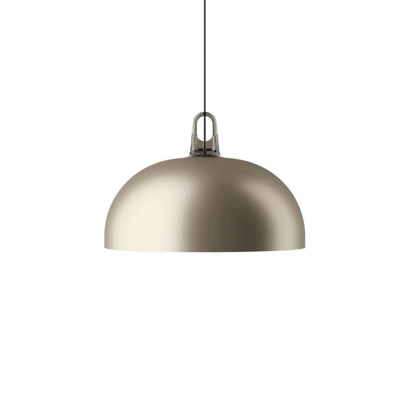 Jim Dome Pendel Grey/Matt Golden er en elegant pendel fra Italienske Studio Italia, der siden 1950’erne har begejstret Skandinavien med tidløse minimalistiske lamper. Udformningen har hentet stor inspiration fra det tidlige nittenhundredetal og periodens kreative cirkler kombineret med simple funktionelle lyskilder. Denne selvsikre enkle æstetik gør Jim Dome nem at tilpasse til næsten ethvert lokale.