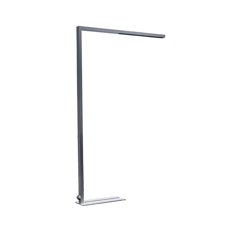 Jolinda Gulvlampe Silver er designet til at være den optimale kontorlampe. Med sit enkle, retvinklede design og to meter høje statur fremstår denne model puristisk og helhedsorienteret. Den flade U-formede fod kan passes rundtom et bordben eller integreres nemt inde under skrivebordet, mens det aflange lampehoved sikrer et bredt skær ved arbejdsstationen. Det indbyggede LED-modul sender lyset ud fra både over- og undersiden af lampehovedet i et kombineret direkte og indirekte skær.