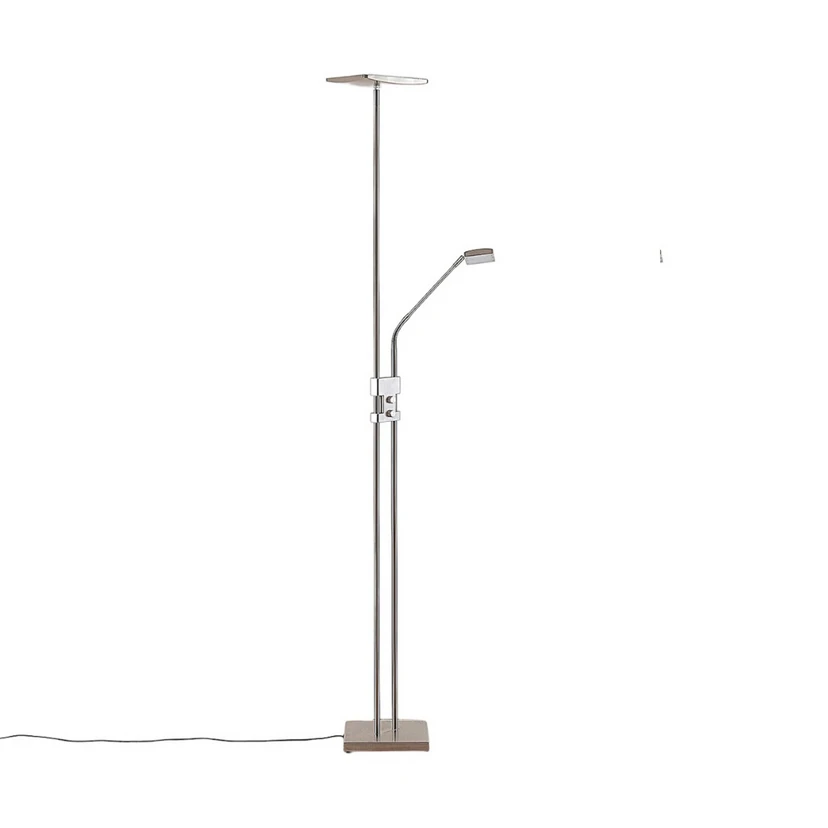 Jonne Gulvlampe Nickel forener flere belysningstyper og samler det bedste fra alle verdener i én og samme kreation. Det multifunktionelle design er her kombineret med en enkel og tidløs form, der nemt finder plads i sofakrogen eller læsehjørnet.