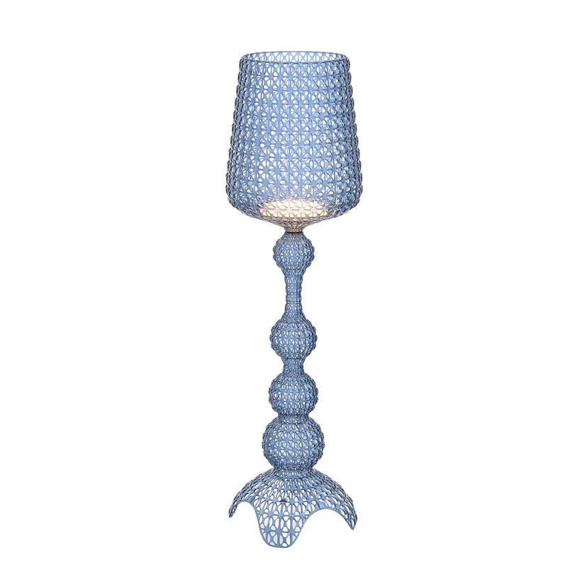 Kabuki Gulvlampen i lys blå, er konstrueret i termoplast ved hjælp af en ny sprøjtestøbeteknik. Med den nye teknik, har Kartell formået at lave en serie af lamper der virkelig skiller sig ud fra mængden.