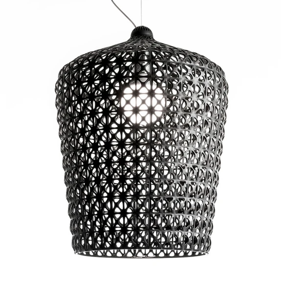 Kabuki Pendlen i sort, er konstrueret i termoplast ved hjælp af en ny sprøjtestøbeteknik. Med den nye teknik, har Kartell formået at lave en serie af lamper der virkelig skiller sig ud fra mængden.