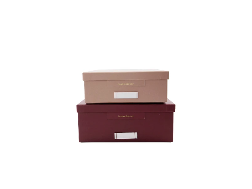 Keep Storage 2pcs. Bordeaux/Rosa fra House Doctor er den perfekte løsning til at organisere dit hjem. Disse to opbevaringsbokse i forskellige størrelser og smukke farvetoner af rød og lyserød vil tilføje et stilfuldt touch til din indretning. Lavet af papir, er de både lette og holdbare, hvilket gør dem ideelle til opbevaring af vigtige papirer, gamle blade eller kontorartikler. Låget, der sidder fast bag på kassen, gør det nemt at fylde dem op og bruge dem, mens skiltet foran giver dig mulighed for at mærke indholdet. For at spare plads og holde orden kan du nemt stable flere kasser på en hylde eller i vindueskarmen. Disse opbevaringskasser fra House Doctor er en hurtig og elegant måde at skabe et organiseret og stilfuldt hjemmekontor på.