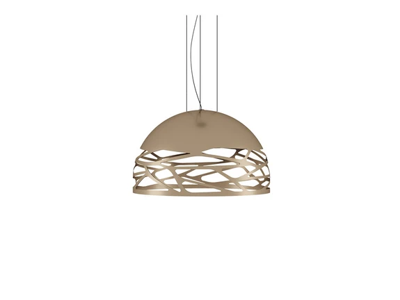 Kelly Dome Pendel Ø50 Matt Golden er endnu en smuk tilføjelse til den unikke lampeserie Kelly af den italienske designer Lodes. Kelly-serien er karakteriseret ved deres formfuldendte sfæriske lampeskærme med smukke forgreninger i bunden, der skaber et smukt og spændende lysspil, hver gang lampen er tændt. Skærmen er skåret med en særlig laserteknik med millimeter-præcise snit, der skaber et smukt lysbillede og giver lampen en knivskarp stringens, der vidner om et gennemtænkt design. Forgreningernes bevidst uregelmæssige struktur tilføjer et organisk udtryk til lampens design og lader samtidig lyset trænge ud igennem de mange mellemrum, så der skabes et bredt lysbillede, der samtidig fremhæver lampens formsprog.