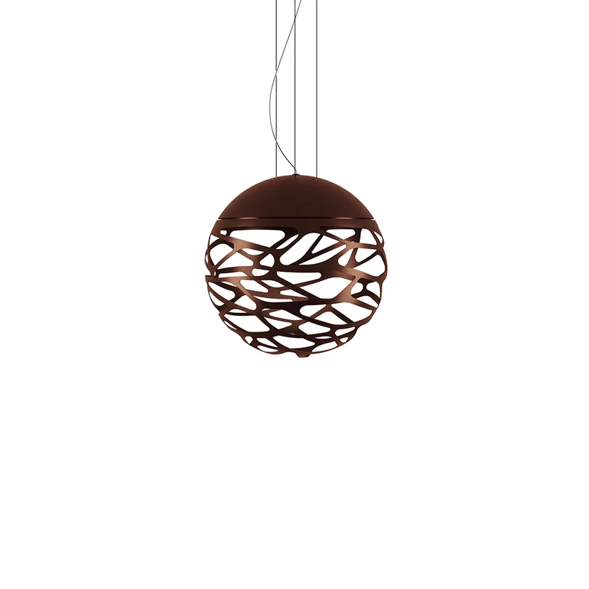 Kelly SO3 Medium Sphere Pendel Kobber/Bronze er en smuk og designorienteret lampe med mange kunstneriske kvaliteter i både form og udtryk. Lampen er karakteriseret ved et rundt design, hvor den nederste halvdel deler sig ud i fine forgreninger, der fremhæves, når man tænder for lyset. Dette skaber samtidig et hyggeligt lysspil hele vejen rundt om lampen, så det fascinerende design forstørres op mange gange. Designet er holdt forholdsvist enkelt, og i kombination med det afdæmpede farveskema bliver Kelly Pendel nem at integrere i mange forskellige typer rum og indretninger, det være sig privathjem såvel som offentlige eller kommercielle lokaler.