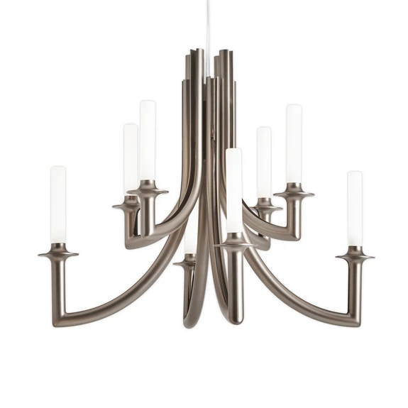 Khan Pendel Matt Bronze er et elegant og stilrent design, der vil give din boligindretning et overdådigt touch, der vil skabe beundring blandt dine gæster. Designeren bag Khan lysekronen ønskede at hylde den særlige elegance som fyldte paladserne i det 18. århundrede igennem et moderne design, som helt sikkert vil skabe blikfang. Khan er formet efter en traditionel lysekrone men med et moderne strejf, der gør den anvendelig i alle former for indretningsstile lige fra de moderne til de traditionelle. Khan er fremstillet i polykarbonat, som også er tilgængelig i tre forskellige farver, så du har mulighed for at vælge den helt rigtige lampe til netop din indretning. Uanset hvilken farve du vælger, så er du garanteret et unikt og dekorativt indretningselement såvel som en funktionel belysningskilde, der vil give dit spisebord et ekstra pift.