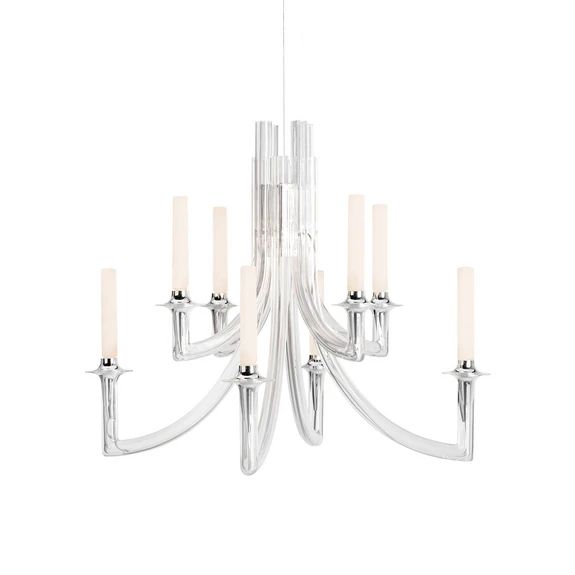 Khan Pendel Transparent er et elegant og stilrent design, der vil give din boligindretning et overdådigt touch, der vil skabe beundring blandt dine gæster. Designeren bag Khan lysekronen ønskede at hylde den særlige elegance som fyldte paladserne i det 18. århundrede igennem et moderne design, som helt sikkert vil skabe blikfang. Khan er formet efter en traditionel lysekrone men med et moderne strejf, der gør den anvendelig i alle former for indretningsstile lige fra de moderne til de traditionelle. Khan er fremstillet i polykarbonat, som også er tilgængelig i tre forskellige farver, så du har mulighed for at vælge den helt rigtige lampe til netop din indretning. Uanset hvilken farve du vælger, så er du garanteret et unikt og dekorativt indretningselement såvel som en funktionel belysningskilde, der vil give dit spisebord et ekstra pift.