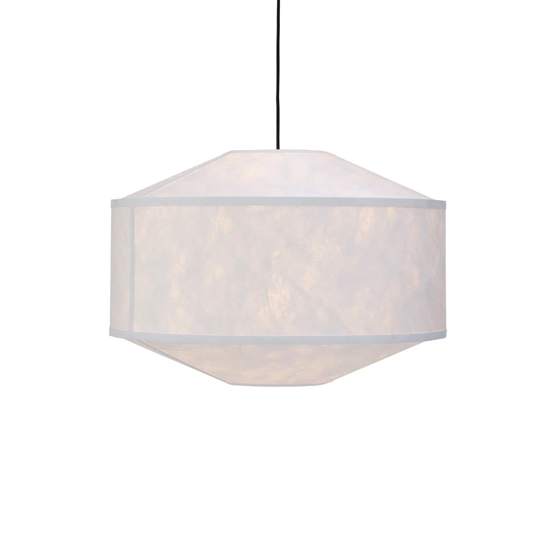 Kite 2W Pendel Ø65 Hvid fra New Works er en elegant tilføjelse til dit hjem, der kombinerer kunstnerisk design med funktionel belysning. Denne pendel lampe er en del af en serie, der udforsker proportioner og abstraktion gennem en harmonisk blanding af geometriske former og tekstureret materialitet. Fremstillet af foldede Tyvek-ark, der er limet på polyethylenark, sikrer denne konstruktion både lethed og stabilitet. Den hvide Tyvek-lampskærm hænger yndefuldt fra en beslag af støbt metal, hvilket tilføjer et moderne touch til din indretning. Med en diameter på 65 cm er denne pendel ideel til at skabe et skulpturelt lysende element, uanset om den hænger alene eller sammen med andre størrelser fra serien. De delikate kantbånd fremhæver lampens silhuet og tilføjer dybde og kontrast til rummet. Gør dit hjem lysere og mere stilfuldt med denne unikke pendel lampe.