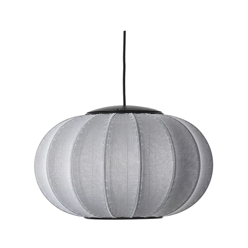 Knit-Wit 45 Oval LED Pendel Silver fra Made by Hand er en unik pendel, der kombinerer traditionelt håndværk med moderne design. Denne lampe er fremstillet af aluminium og stof, og den sølvfarvede overflade giver et elegant udtryk, der passer perfekt ind i både private hjem og offentlige rum. Med målene h31 x ø45cm er den ideel til at skabe en varm og indbydende atmosfære. Det strikkede materiale i Knit-Wit lampen spreder lyset gennem garnets mønster, hvilket gør hver lampe unik og dekorativ.