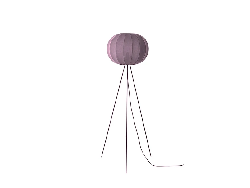 Knit-Wit 45 Round Gulvlampe Høj Burgundy er en karakteristisk og dekorativ gulvlampe. Inspireret af rispapirlampen er lyskilden skjult og skinner ud gennem lampens enkle, men smukke skærm. I stedet for rispapir har man anvendt den århundreder gamle håndværk strikning til fremstilling af lampen. Lyset bliver fordelt gennem mønstrene i garnet og giver et behageligt og stemningsfuldt lys 360 grader ud i rummet. Som en kontrast til den bløde skærm har lampen tre sorte og helt tynde ben. Sammen giver det lampen et skandinavisk look med et elegant og stilfuldt udtryk.