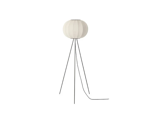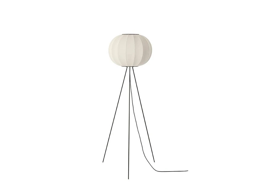Knit-Wit 45 Round Gulvlampe Høj Pearl White er en karakteristisk og dekorativ gulvlampe. Inspireret af rispapirlampen er lyskilden skjult og skinner ud gennem lampens enkle, men smukke skærm. I stedet for rispapir har man anvendt den århundreder gamle håndværk strikning til fremstilling af lampen. Lyset bliver fordelt gennem mønstrene i garnet og giver et behageligt og stemningsfuldt lys 360 grader ud i rummet. Som en kontrast til den bløde skærm har lampen tre sorte og helt tynde ben. Sammen giver det lampen et skandinavisk look med et elegant og stilfuldt udtryk.