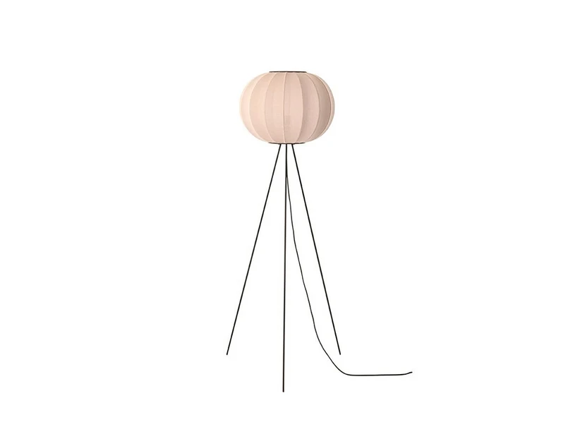 Knit-Wit 45 Round Gulvlampe Høj Sandstone er en karakteristisk og dekorativ gulvlampe. Inspireret af rispapirlampen er lyskilden skjult og skinner ud gennem lampens enkle, men smukke skærm. I stedet for rispapir har man anvendt den århundreder gamle håndværk strikning til fremstilling af lampen. Lyset bliver fordelt gennem mønstrene i garnet og giver et behageligt og stemningsfuldt lys 360 grader ud i rummet. Som en kontrast til den bløde skærm har lampen tre sorte og helt tynde ben. Sammen giver det lampen et skandinavisk look med et elegant og stilfuldt udtryk.
