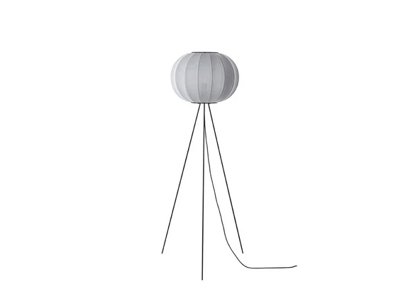 Knit-Wit 45 Round Gulvlampe Høj Silver er en karakteristisk og dekorativ gulvlampe. Inspireret af rispapirlampen er lyskilden skjult og skinner ud gennem lampens enkle, men smukke skærm. I stedet for rispapir har man anvendt den århundreder gamle håndværk strikning til fremstilling af lampen. Lyset bliver fordelt gennem mønstrene i garnet og giver et behageligt og stemningsfuldt lys 360 grader ud i rummet. Som en kontrast til den bløde skærm har lampen tre sorte og helt tynde ben. Sammen giver det lampen et skandinavisk look med et elegant og stilfuldt udtryk.