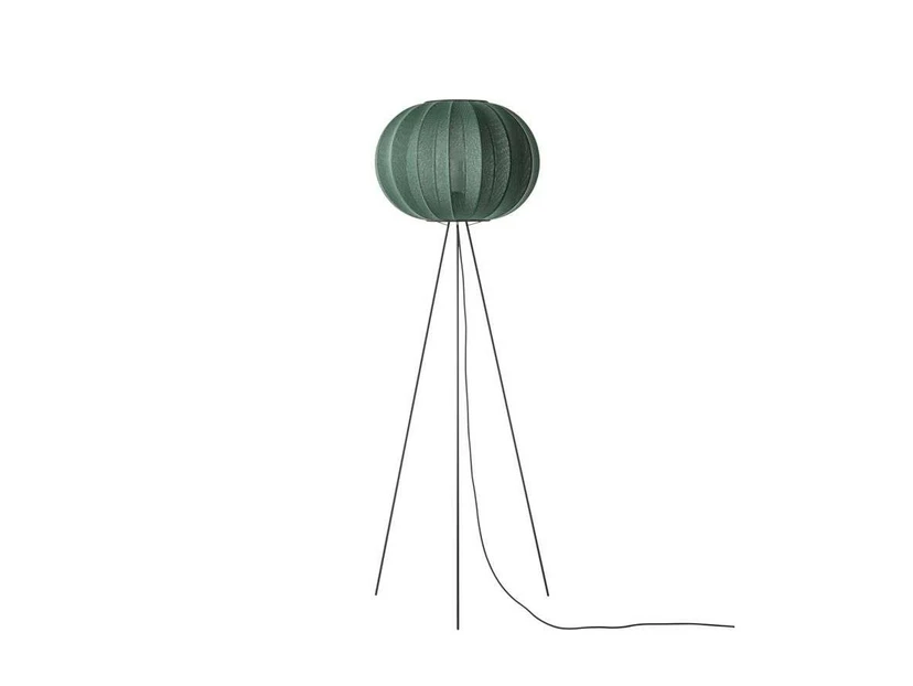 Knit-Wit 45 Round Gulvlampe Høj Tweed Green er en karakteristisk og dekorativ gulvlampe. Inspireret af rispapirlampen er lyskilden skjult og skinner ud gennem lampens enkle, men smukke skærm. I stedet for rispapir har man anvendt den århundreder gamle håndværk strikning til fremstilling af lampen. Lyset bliver fordelt gennem mønstrene i garnet og giver et behageligt og stemningsfuldt lys 360 grader ud i rummet. Som en kontrast til den bløde skærm har lampen tre sorte og helt tynde ben. Sammen giver det lampen et skandinavisk look med et elegant og stilfuldt udtryk.