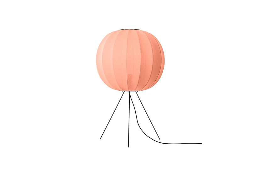 Knit-Wit 60 Round Gulvlampe Medium Coral er en karakteristisk og dekorativ gulvlampe. Inspireret af rispapirlampen er lyskilden skjult og skinner ud gennem lampens enkle, men smukke skærm. I stedet for rispapir har man anvendt den århundreder gamle håndværk strikning til fremstilling af lampen. Lyset bliver fordelt gennem mønstrene i garnet og giver et behageligt og stemningsfuldt lys 360 grader ud i rummet. Som en kontrast til den bløde skærm har lampen tre sorte og helt tynde ben. Sammen giver det lampen et skandinavisk look med et elegant og stilfuldt udtryk.