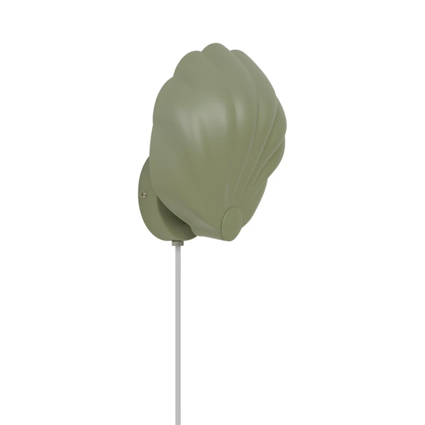 De bløde buer, den rillede overfladestruktur og den karakteristiske vifteform giver lampeskærmen en slående lighed med muslingeskaller, hvilket tilføjer et naturligt strejf til det flotte design. Lyskilden er placeret bag skærmen, så der skabes et behageligt indirekte lys på væggen bag ved lampen. Den strategiske placering af lyskilden gør, at lyset aldrig blænder men altid fremstår blødt og rart for øjnene.