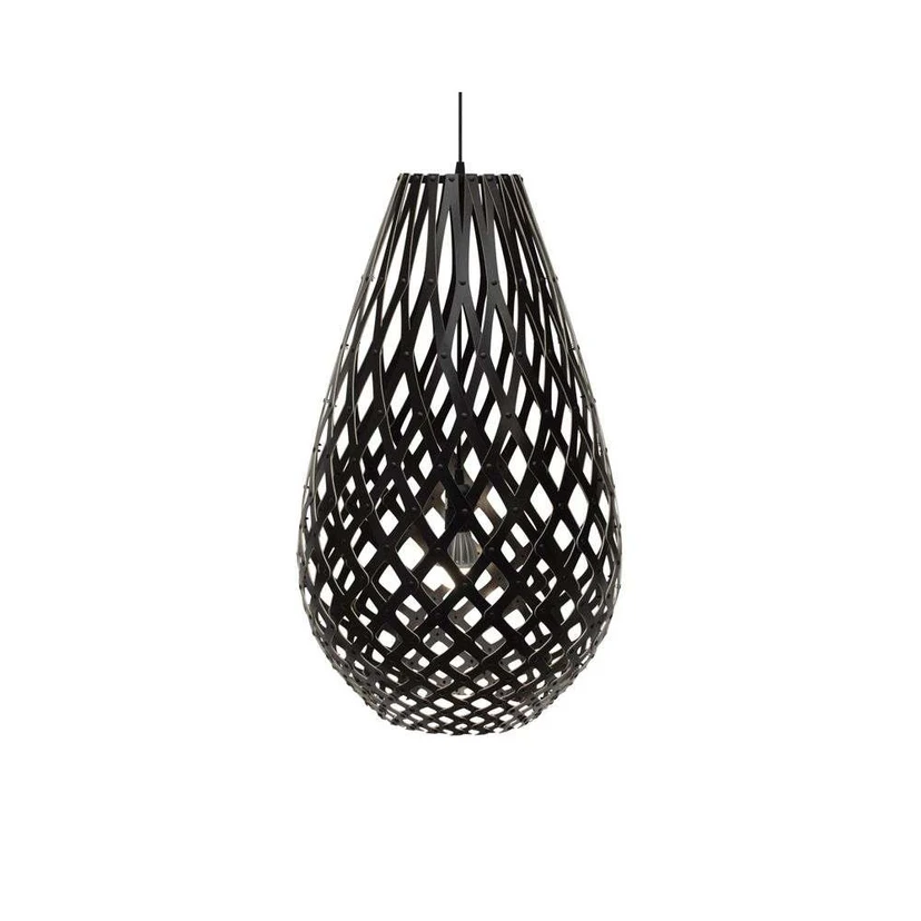 Koura Pendel H100 har, som så mange andre David Trubridge design, hentet inspiration fra naturen – denne gang fra de vævede kurve og fra den krøllede form på den indfødte newzealandske ferskvandsreje; "Koura". Den fås i en række forskellige størrelse. Fra den lille på 50cm og til den imponerende lampe med en højde på 160cm. Så der er en der passer ind i ethvert hjem eller bygning.