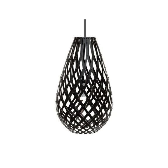 Koura Pendel H75 har, som så mange andre David Trubridge design, hentet inspiration fra naturen – denne gang fra de vævede kurve og fra den krøllede form på den indfødte newzealandske ferskvandsreje; "Koura". Den fås i en række forskellige størrelse. Fra den lille på 50cm og til den imponerende lampe med en højde på 160cm. Så der er en der passer ind i ethvert hjem eller bygning.