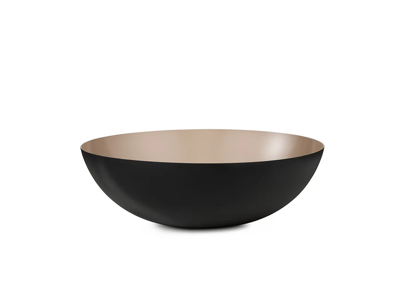 Krenit Bowl Ø38 Sand fra Normann Copenhagen er en elegant og funktionel tilføjelse til dit hjem. Denne skål, fremstillet af holdbart stål, kombinerer en mat sort yderside med en blank rød inderside, hvilket skaber en smuk kontrast, der tiltrækker opmærksomhed. Krenit skålen er ideel til servering af salater, frugt eller snacks, men kan også bruges som en dekorativ genstand i din stue eller køkken. Den tidløse og minimalistiske design gør den let at integrere i enhver indretning, mens den robuste konstruktion sikrer, at den holder i mange år. Med sin diameter på 38 cm er denne skål rummelig nok til at rumme store portioner, hvilket gør den perfekt til både hverdag og festlige lejligheder. Giv dit hjem et strejf af skandinavisk elegance med denne smukke skål fra Normann Copenhagen.