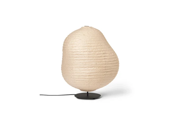 Kurbis Gulvlampe Low Natural/Sort fra Ferm Living er en standerlampe, der kombinerer moderne design med funktionalitet. Denne gulvlampe er skabt af delikat washi-papir, der er omhyggeligt formet og understøttet af en robust ramme af rustfrit stål. Den pulverlakerede sorte metalbase giver lampen en stilfuld og tidløs finish, mens den 2,6 meter lange sorte stofledning med tænd/sluk-knap sikrer nem betjening. Med en diameter på 60 cm og en højde på 63,3 cm passer lampen perfekt ind i ethvert rum, hvor du ønsker at skabe en hyggelig og indbydende atmosfære. Dens unikke, asymmetriske form udsender et blødt lys, der er ideelt til at forvandle en læsekrog eller en yndlingsstol til et afslappende fristed. Kurbis Gulvlampen er ikke blot en lyskilde, men også et kunstnerisk element, der tilføjer æstetisk værdi til dit hjem. .